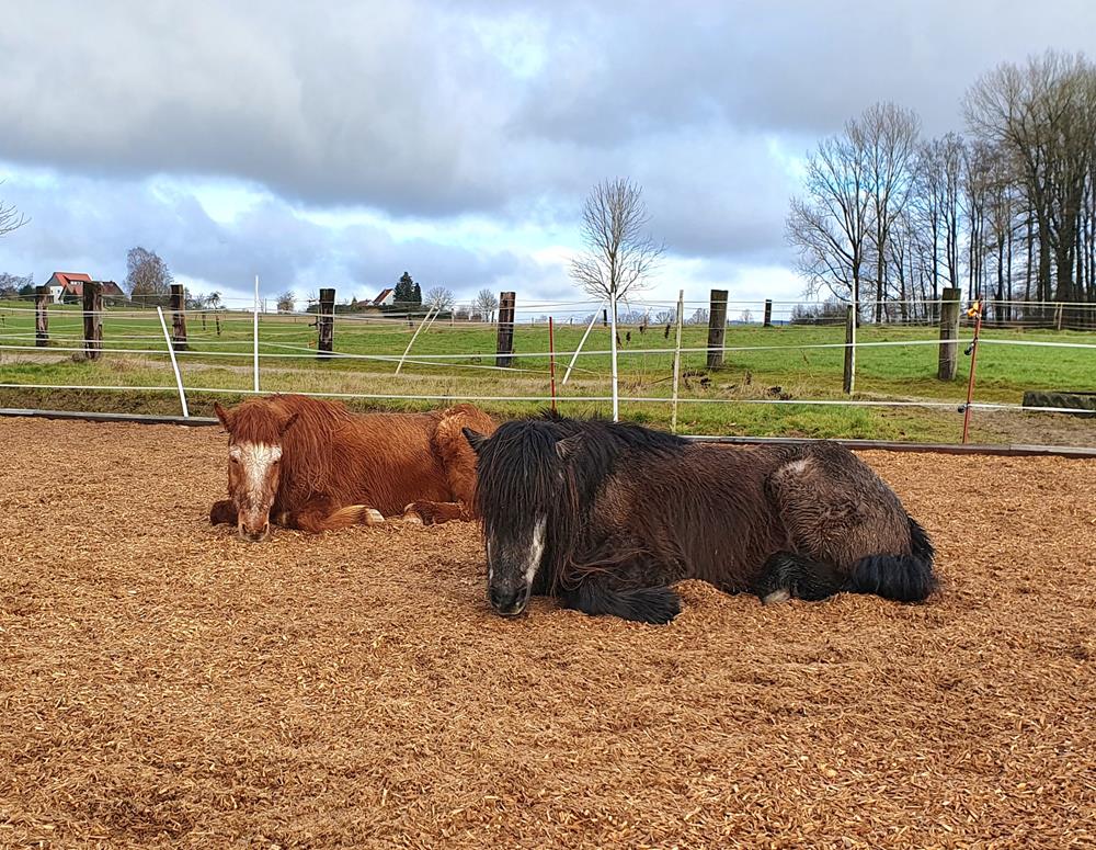 Wenn es ums Schlafen geht wird viel über Einstreu, Matten und andere mögliche Untergründe diskutiert. Unseren Pferden ist der Untergrund gar nicht so wichtig. Klar, so richtig tiefer Matsch ist nicht schön (manchen aber auch egal) und auf nacktem Steinboden soll auch kein Pferd liegen müssen, aber alles dazwischen wird bei uns akzeptiert – wenn die Aussicht stimmt.