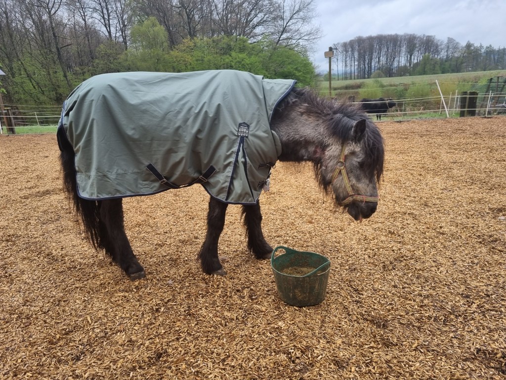 Obwohl sie so abgeklärt gewirkt hatte, muss dieses Erlebnis sie extrem schockiert haben. Denn danach hat sie nur noch wenig gefressen. Sie schien die Ruhe nicht mehr zu haben, lief ständig umher, umkreiste rastlos den Futtereimer, nahm nur ein paar Häppchen, lief stundenlang sinnlos herum oder stand müde und allein im Unterstand. Ihren Rang als Chefin verlor sie jetzt auch. Aber sie freute sich, wenn wir Futter brachten, wenn sie geputzt wurde, nahm am Leben teil. Also warteten wir erstmal, wie es sich entwickelte.